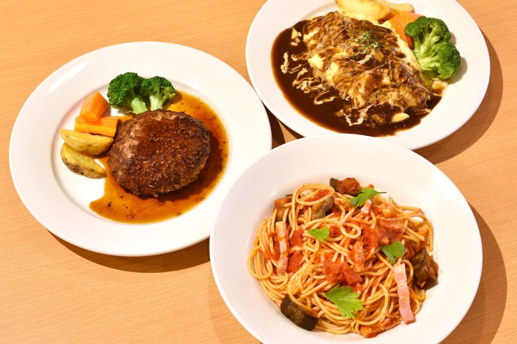 パスタ×ハンバーグ×オムライス